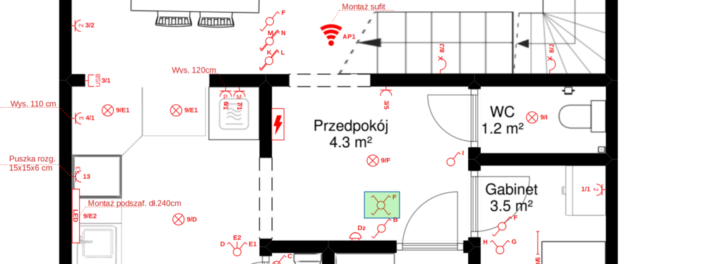 - Gdzie powinny zostać zainstalowane oprawy oświetleniowe, gniazda, włączniki itp.