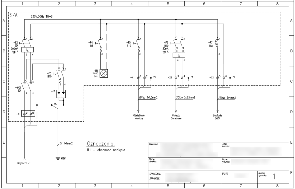 Na schematach wykonawczych instalacji elektrycznej projektant umieszcza również dodatkowe uwagi, które mogą mieć znaczenie dla wycinka lub całości instalacji.