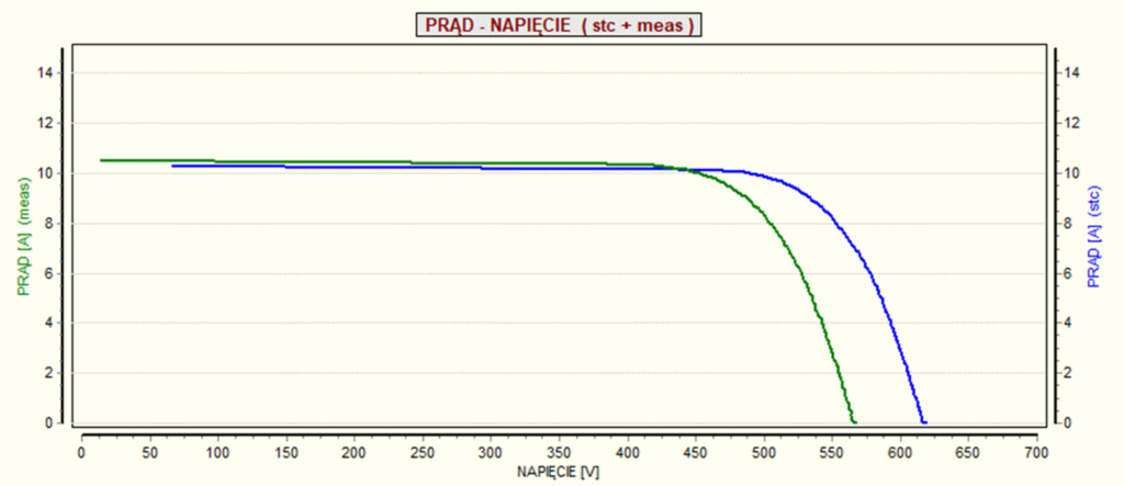 Aby móc rzetelnie i dokładnie ocenić zmierzoną wartość Voc należy wykonać analizę z uwzględnieniem warunków środowiskowych, przeliczeniem wyników do warunków podanych w karcie katalogowej oraz ich porównaniem z danymi podanymi przez producenta.