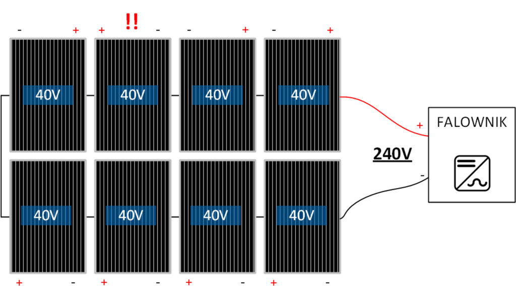 Badamy, aby uniknąć zamiany polaryzacji elementów składowych czy to paneli czy stringów PV. Należy