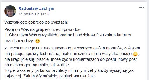 Kurs zawiera konkretną i praktyczną dawkę wiedzy i narzędzi.